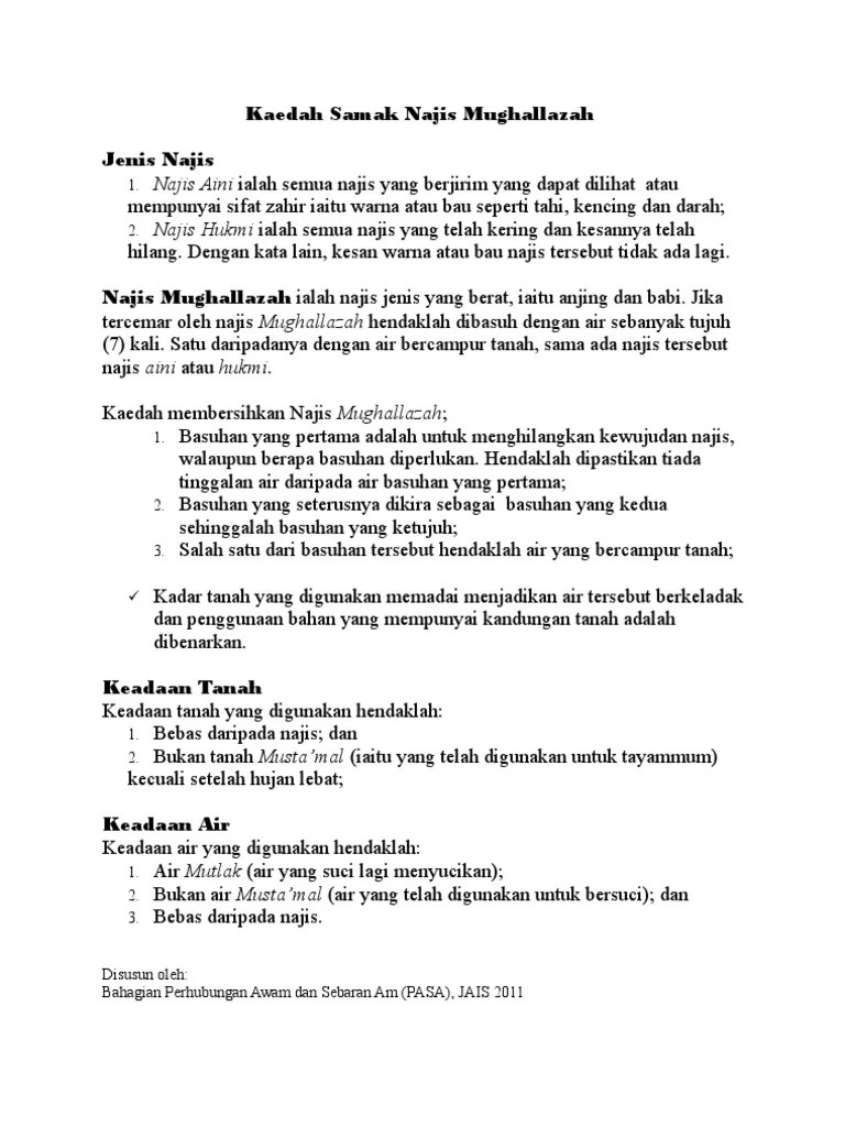 Jenis tanah untuk samak malaynuinui. Najis mughallazah ialah najis jenis yang berat, iaitu anjing dan babi. Insyaallah imam muda asyraf akan menjawab segala kemusykilan agama .